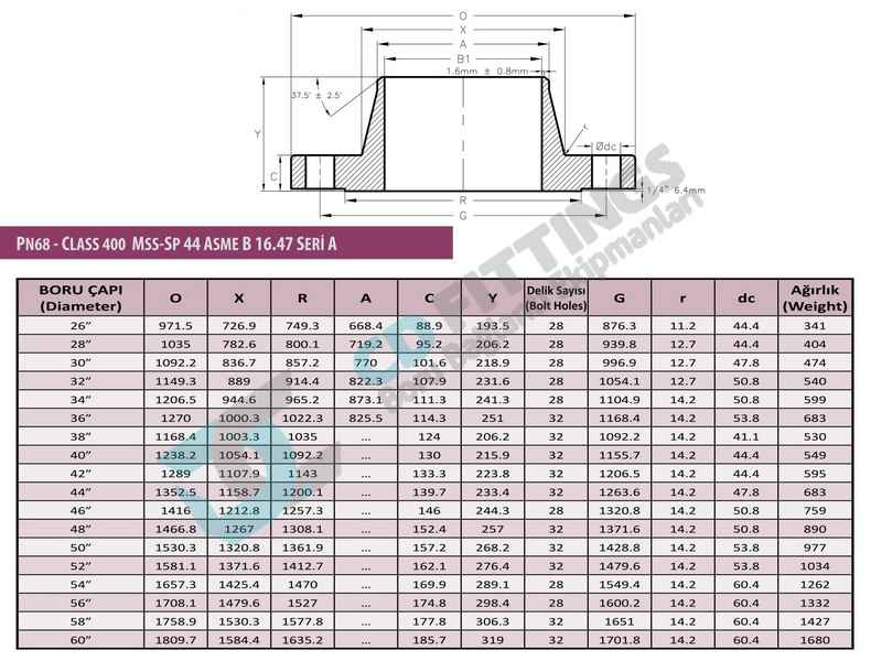 • PN 68 - CLASS 400 MSS-SP 44 ASME B16.47 SERİ A
