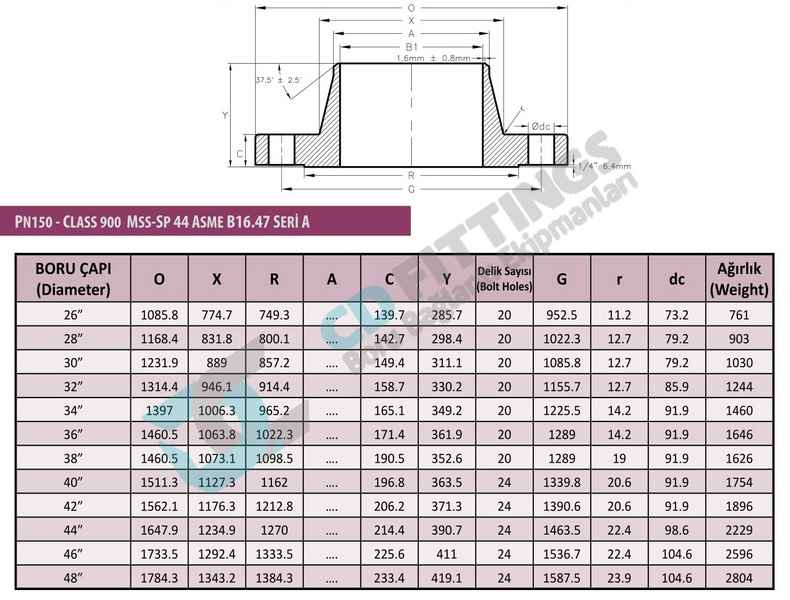 • PN 20 - CLASS 150 MSS-SP 44 ASME B 16.47 SERİ A