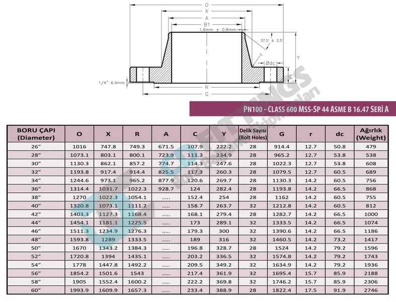 PN100 - CLASS 600 MSS-SP 44 ASME B 16.47 SERİ A