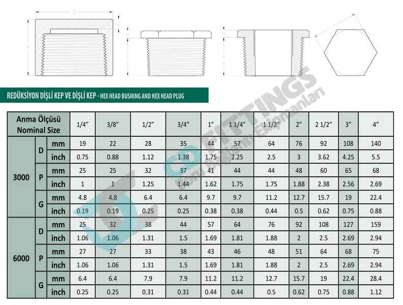 REDÜKSİYON DİŞLİ KEP VE DİŞLİ KEP - HEX HEAD BUSHİNG AND HEX HEAD PLUG